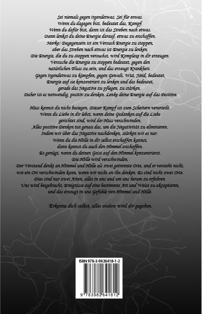 Sei niemals gegen irgendetwas. Sei für etwas. Wenn du dagegen bist, bedeutet das, Kampf. Wenn du dafür bist, dann ist das Streben nach etwas. Dann lenkst du deine Energie darauf, etwas zu erschaffen. Merke! Dagegensein ist ein Versuch Energie zu stoppen, aber das Streben nach etwas ist Energie zu lenken. Die Energie, die du zu stoppen versuchst, wird Komplexe in dir erzeugen. Versuche die Energie zu stoppen bedeutet, gegen den natürlichen Fluss zu sein, und das erzeugt Krankheit. Gegen irgendetwas zu kämpfen, gegen Gewalt, Wut, Neid, bedeutet, Energie auf sie konzentriert zu lenken und das bedeutet, gerade das Negative zu pflegen, zu stärken. Daher ist es notwendig, positiv zu denken. Lenke deine Energie auf das Positive. Hass kannst du nicht besiegen. Dieser Kampf ist zum Scheitern verurteilt. Wenn du Liebe in dir lebst, wenn deine Gedanken auf die Liebe gerichtet sind, wird der Hass verschwinden. Alles positive Denken tut genau das, um die Negativität zu eliminieren. Indem wir über das Negative nachdenken, stärken wir es nur. Wenn du die Hölle in dir selbst erschaffen kannst, dann kannst du auch den Himmel erschaffen. Es genügt, wenn du deinen Geist auf den Himmel konzentrierst. Die Hölle wird verschwinden. Der Verstand denkt an Himmel und Hölle als zwei getrennte Orte, und er versteht nicht, wie ein Ort verschwinden kann, wenn wir nicht an ihn denken. Es sind nicht zwei Orte. Dies sind nur zwei Arten, alles in uns und um uns herum zu erfahren. Uns wird beigebracht, Ereignisse auf eine bestimmte Art und Weise zu akzeptieren, und das erzeugt in uns Gefühle von Himmel und Hölle. Erkenne dich selbst, alles andere wird dir gegeben.